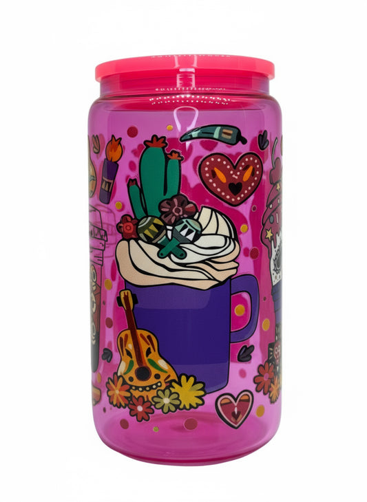 Books Spicy, Coffee Icy 16 oz Glass Cup